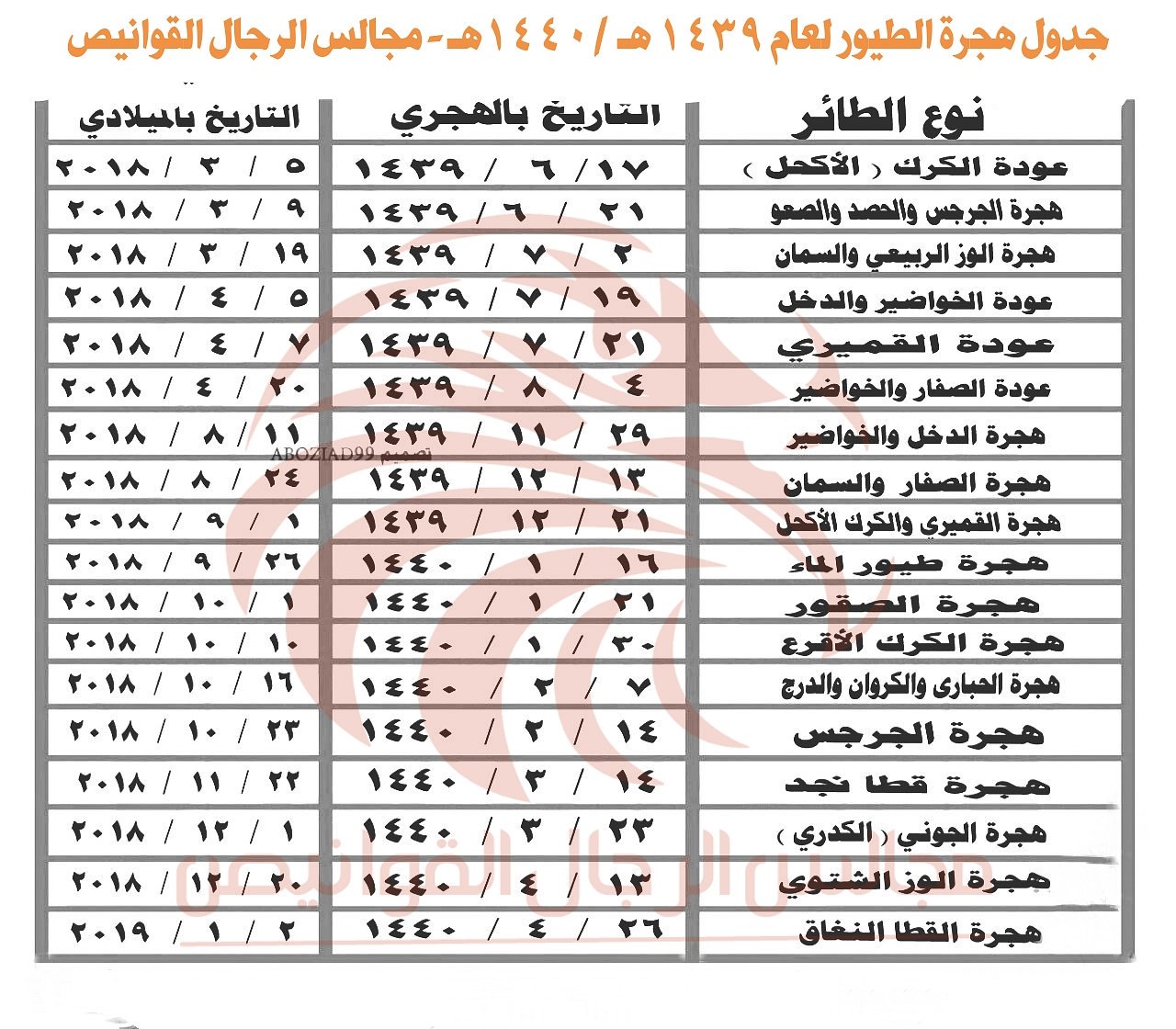 On Twitter جدول تاريخ هجرة الطيور لعام 1439 1440 هجره الطيور سنه جديده 1440هـ عام هجري جديد ١٤٤٠ السعوديه رفحاء