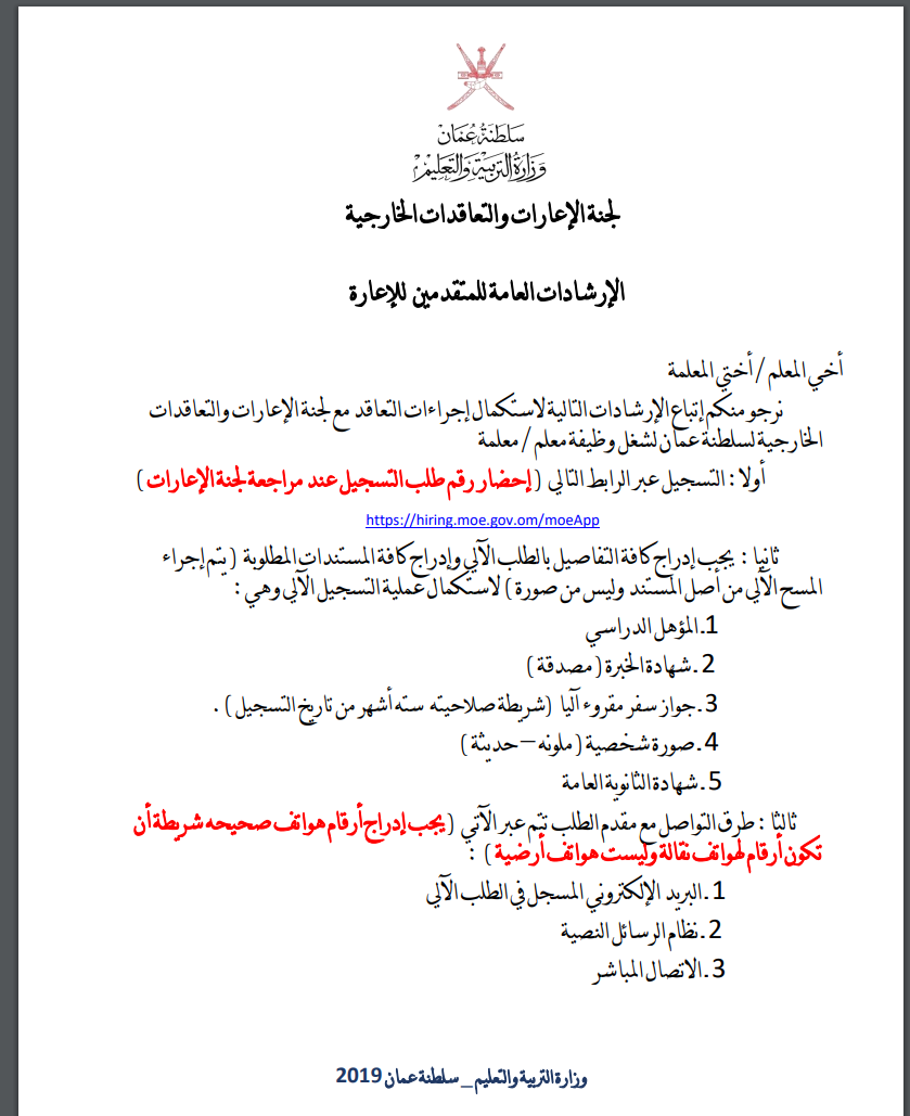 وزارة التربية والتعليم بسلطنة عمان استمارة طلب توظيف